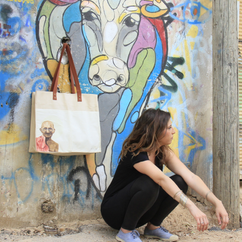 תיק טיול שיכיל את מכלול חוויותך ! תיק הולידיי- עם ציור דמותו של מהטמה גנדי, האיש וההשראה.